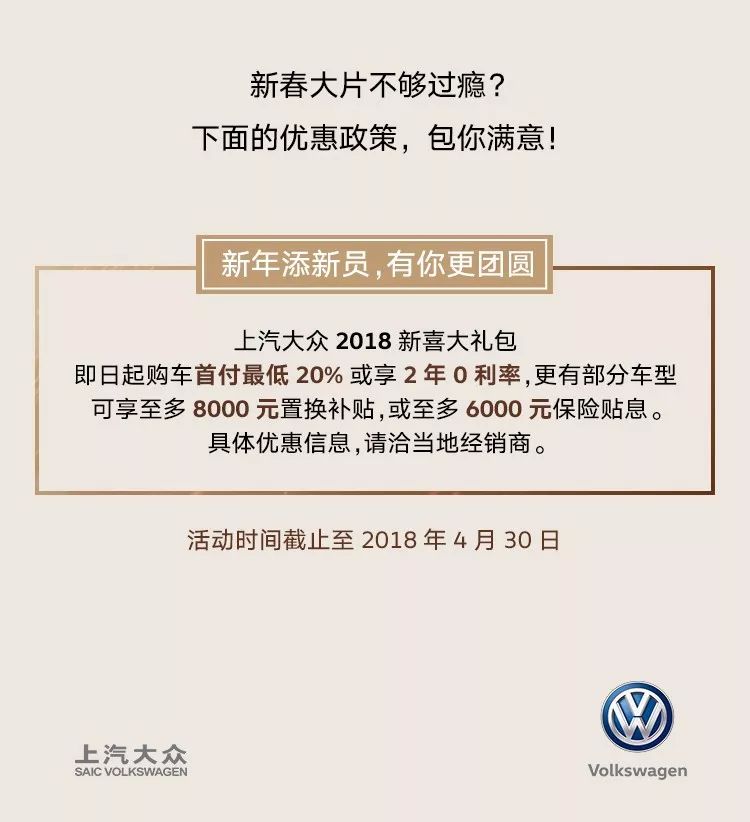 新年添新员,有你更团圆 上汽大众2018新喜大礼包