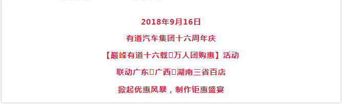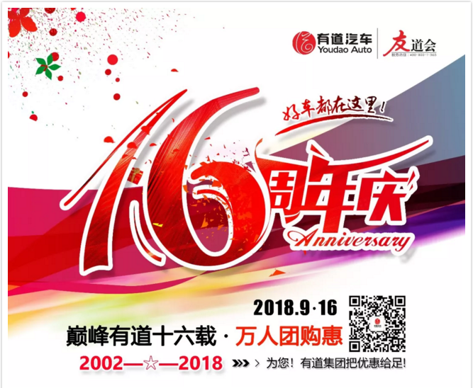 【巅峰有道十六载·万人团购惠】有道汽车集团十六周年庆钜惠来袭!
