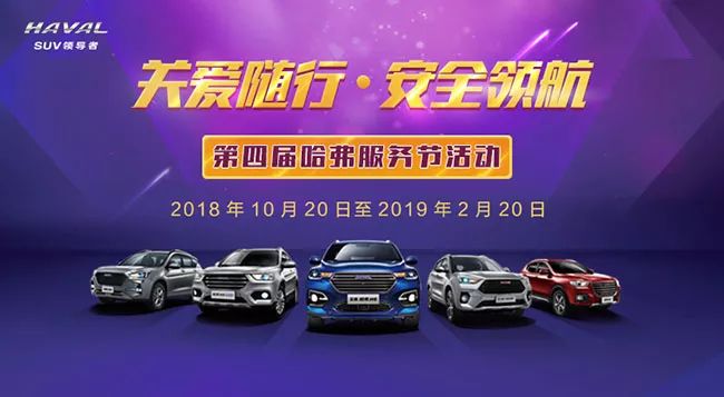 在今年的服务节中,哈弗仍将为所有客户提供百公里以内的免费救援服务(事故理赔除外);值得一提的是,为了给客户提供更灵活的进店时间,1月20日至2月3日期间,哈弗将开通服务晚班车专列,每日延长服务时间,尽力为每一位进店用户完成最高质量的服务。