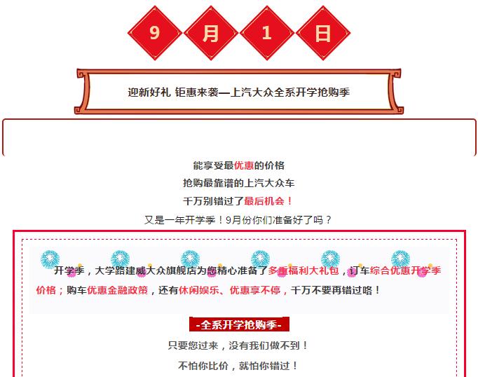 【蓄势待发】9月1日 迎新好礼 钜惠来袭 上汽大众全系开学抢购季即将开始