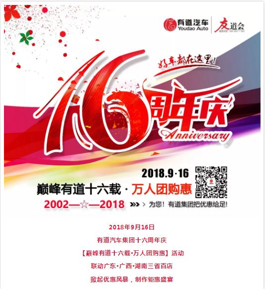 【巅峰有道十六载·万人团购惠】有道汽车集团十六周年庆钜惠来袭!