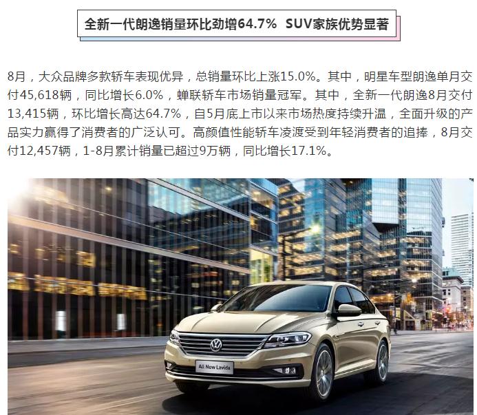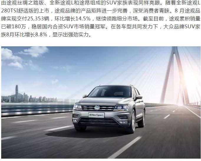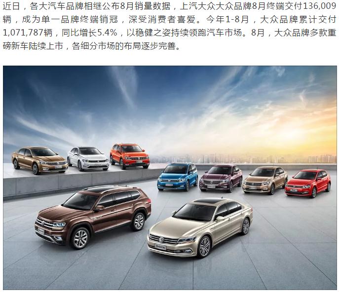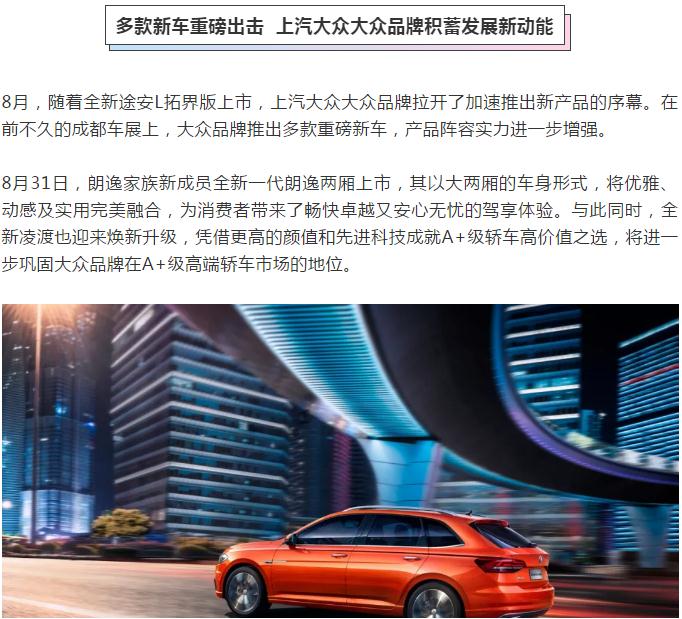 8月终端销量夺冠 上汽大众大众品牌推多款新产品积蓄新动能