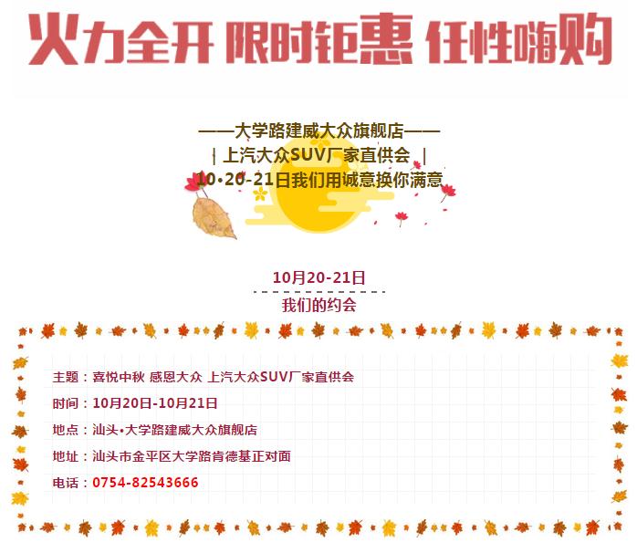 ● 【车展延续 盛“惠”不止】汕头建威大众全系特卖团购会